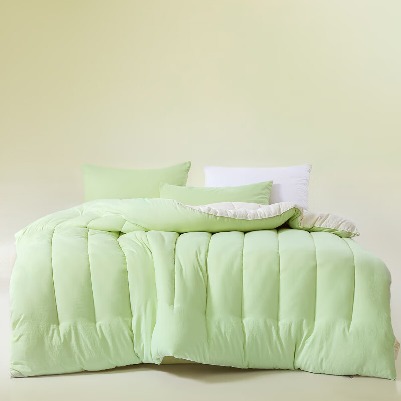 被芯采用超柔面料,细腻柔软,如牛奶般亲肤;大豆纤维含量达到10%的蛋白纤维填充;轻盈舒适,被芯有羊绒般的手感保暖度良好有效促进睡眠