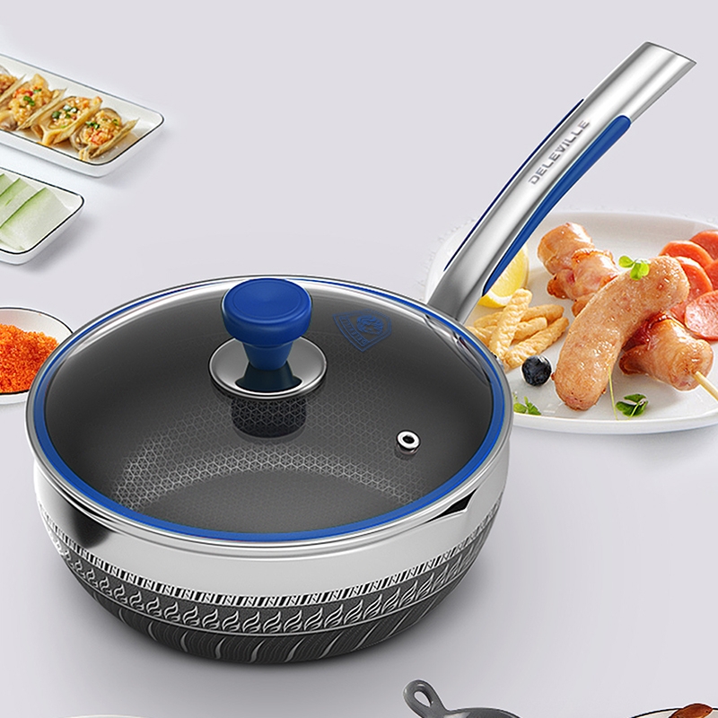 加厚304不锈钢炒锅,耐高温、抗腐蚀,符合卫生标准;无涂层设计可搭配金属锅铲使用;家庭聚餐时能轻松应对大量食材的烹饪。