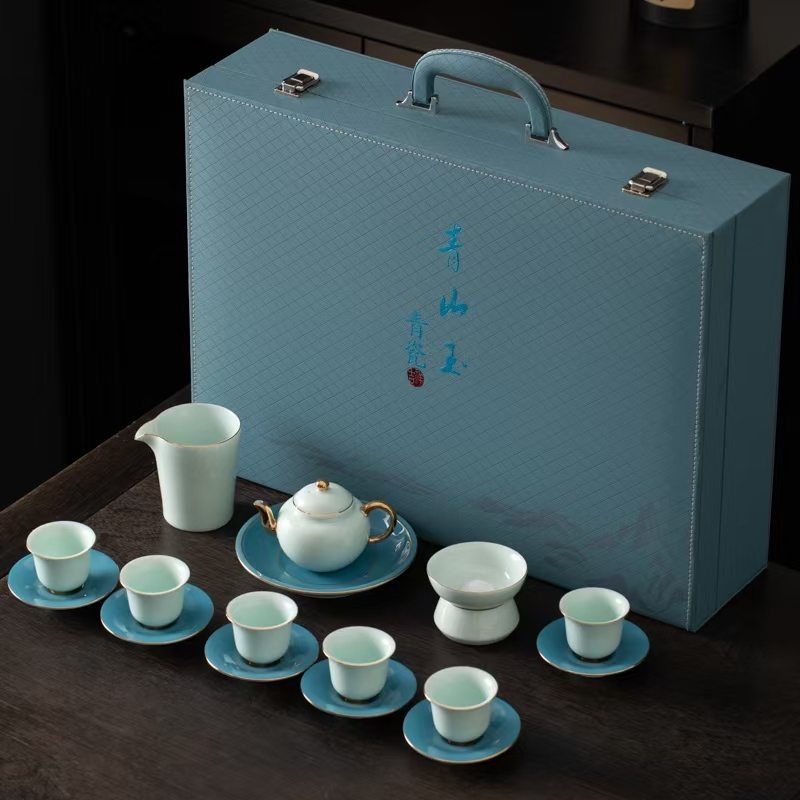 青山玉是高端青瓷新品,以瓷质细腻,线条明快流畅,;色泽纯洁而斑斓著称。青如玉,明如镜,声如磬;描24K真金奢华装饰,被称为瓷器之花。
