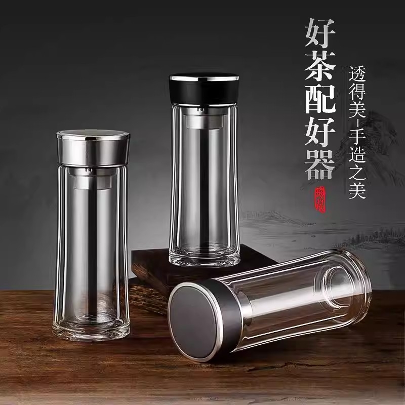 ¥ 240高硼硅玻璃杯健康、无毒、无异味;手工吹制而成认真对待每一件好器;内置密封圈倒置不漏可入包随身携带;品质礼袋设计,送礼自用都大气;双层高硼硅高温手握隔热防烫