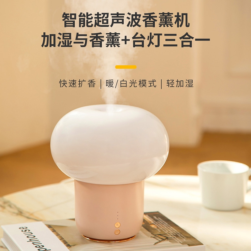 一拍即亮,七彩变换;细腻水雾,不打湿桌面;蘑菇造型,趣味相伴