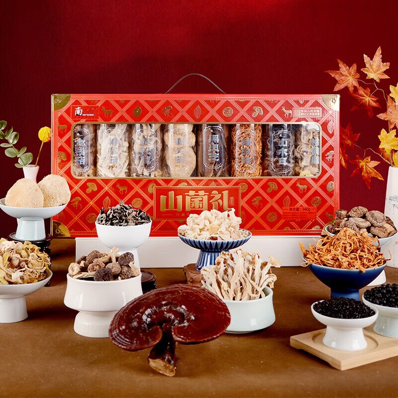 采用高档礼盒包装,长形大透窗设计;盒内精选8种山珍搭配两款甄选黑粮;严格筛选,品质上乘