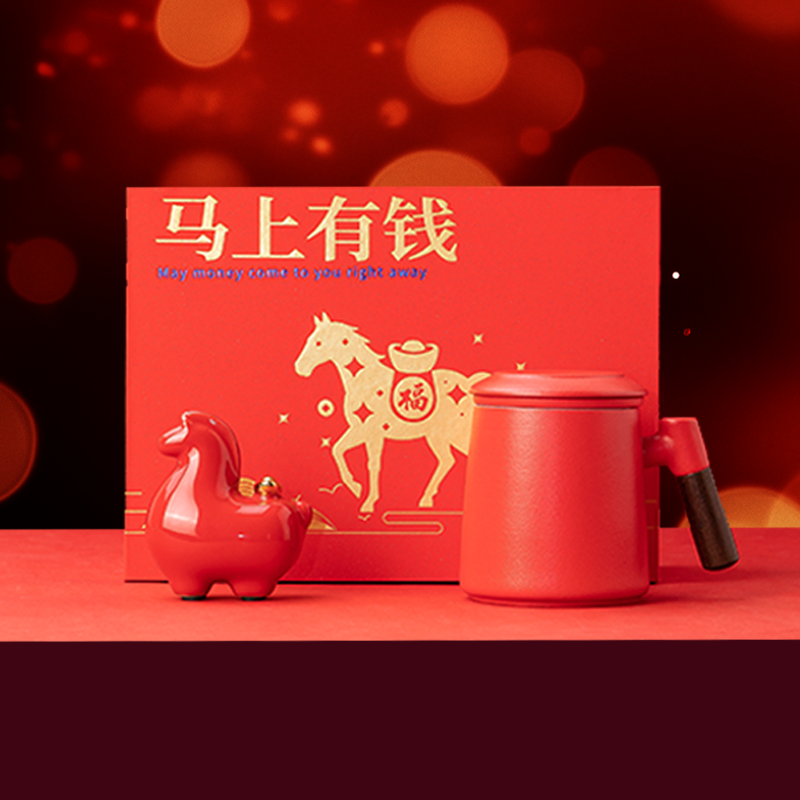 加入PPT紧扣马年主题,"马上有钱"谐音寓意讨喜;摆件与杯子均采用优质陶瓷,细腻温润、耐用易清洁;经典中国红搭配烫金元素,完美契合春节氛围,年味十足;配套精美贺卡,可定制专属祝福,让礼物更有情感价值;作为马年限定产品,具有独特的收藏与纪念意义