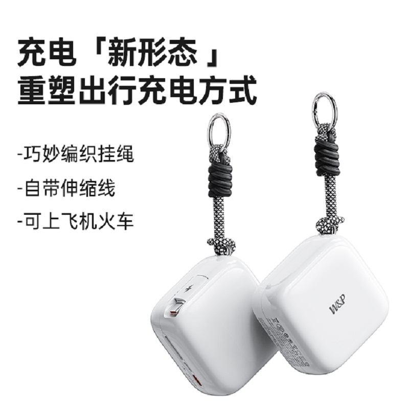 加入PPT30分钟充60%支持苹果8-15 PD快充,;自带Type-C+Lightning双输出线;一线两用 方便携带,既是自充线也是手提绳;
