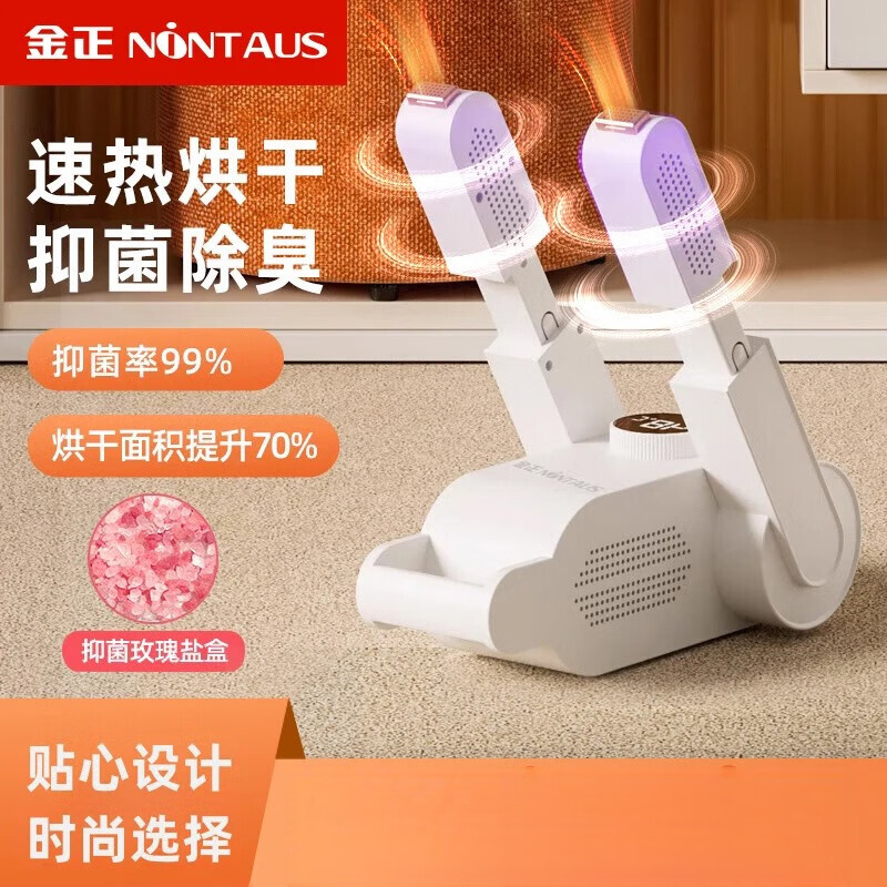 小巧折叠,轻松便携,伸缩卡扣调节,防止支架滑落;NTC智能调温,48℃恒温,安全放心;UVC紫光杀菌,不挑鞋型,双档烘干,多场景适用