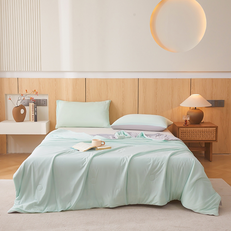 A类凉感丝面料 0甲醛 0 荧光剂 0芳香胺;拥有较好的柔软性透气性,吸水性;精致绗缝,可手洗可机洗