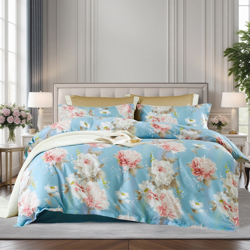 丝质细腻柔软,莹润有质感;沁凉的磨毛印花面料,手接触肌肤细腻舒适;均匀平整,圆角设计,精致的绗缝工艺