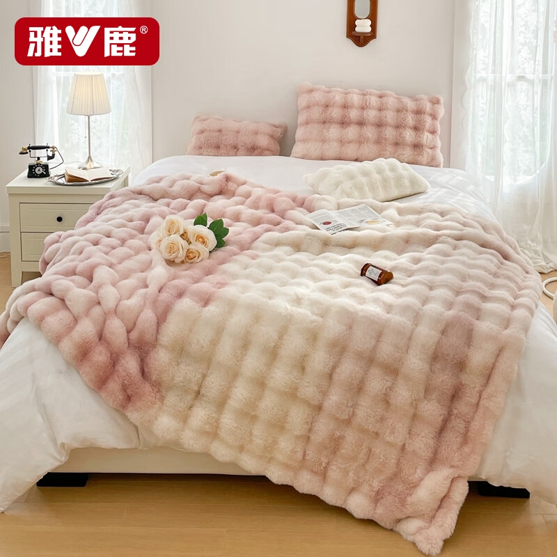 蕊丝坊 提花兔毛羊驼绒毛毯冬季保暖