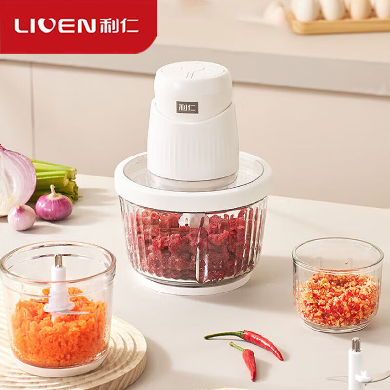 不锈钢四叶刀片;300W大功率,动力强,绞肉仅需十秒钟;可拆洗设计,一冲即净,切碎刀可单独拆洗