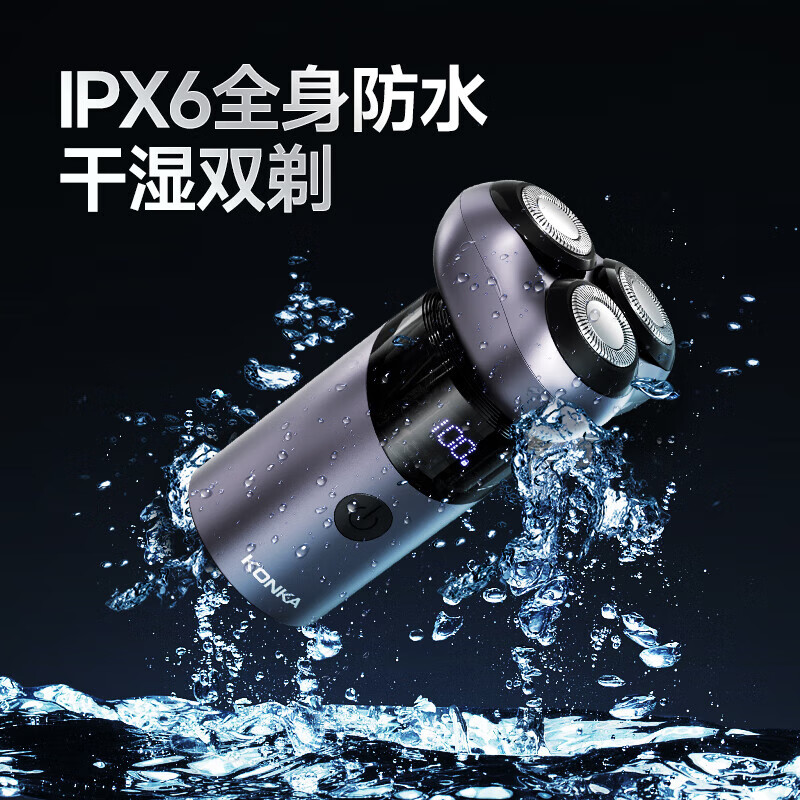 LED数码显示 运行状态一屏掌控;电量不受限 70天长效续航;IPX6全身防水干湿双剃
