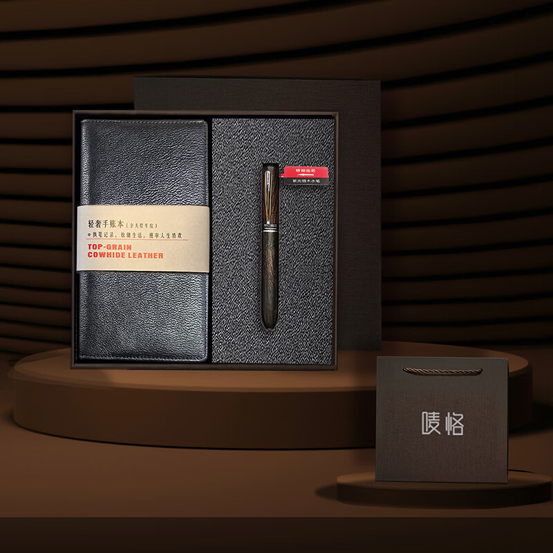 手帐本采用头层植鞣牛皮手感好配本芯;气垫梳采用高油檀木和羊角齿,无漆,健康亲肤不静电;水笔采用高油紫光檀无漆可包浆