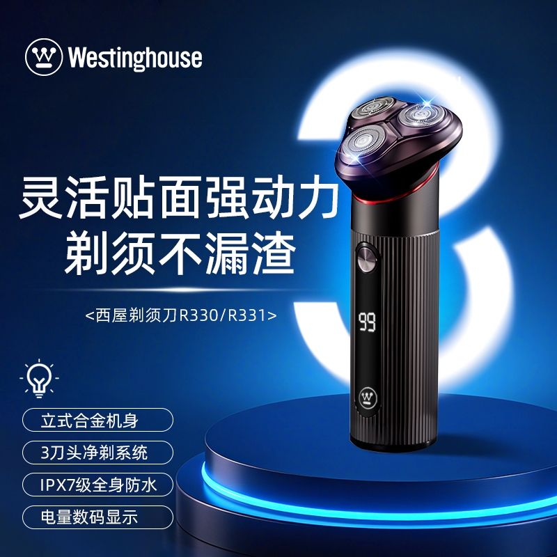 3D立体浮动刀头,顺滑贴面、轻松剃须;约1.5H快充,使用时间100分钟;IPX7 级全身水洗,便捷清洗
