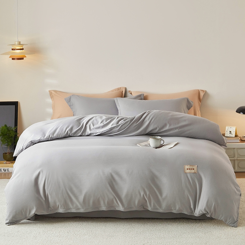 水洗棉面料,经过特别水洗处理;纯色面料干净清爽,四周配有被角扣,方便使用被套;优质整张羽丝棉纤维填充,蓬松绵柔,轻盈保暖
