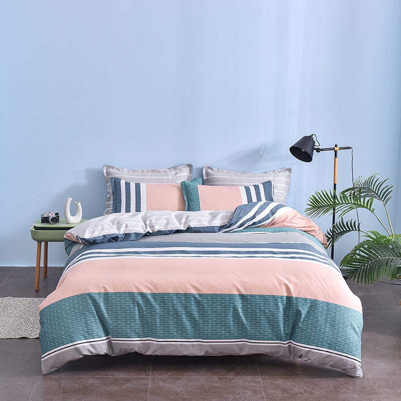 采用AB双版印花,清爽的印花设计,清新淡雅;天然棉花具有较好的染色效果,纤维强度高,手感柔软;面料采用斜纹工艺,斜纹织物的手感松软,密度较高