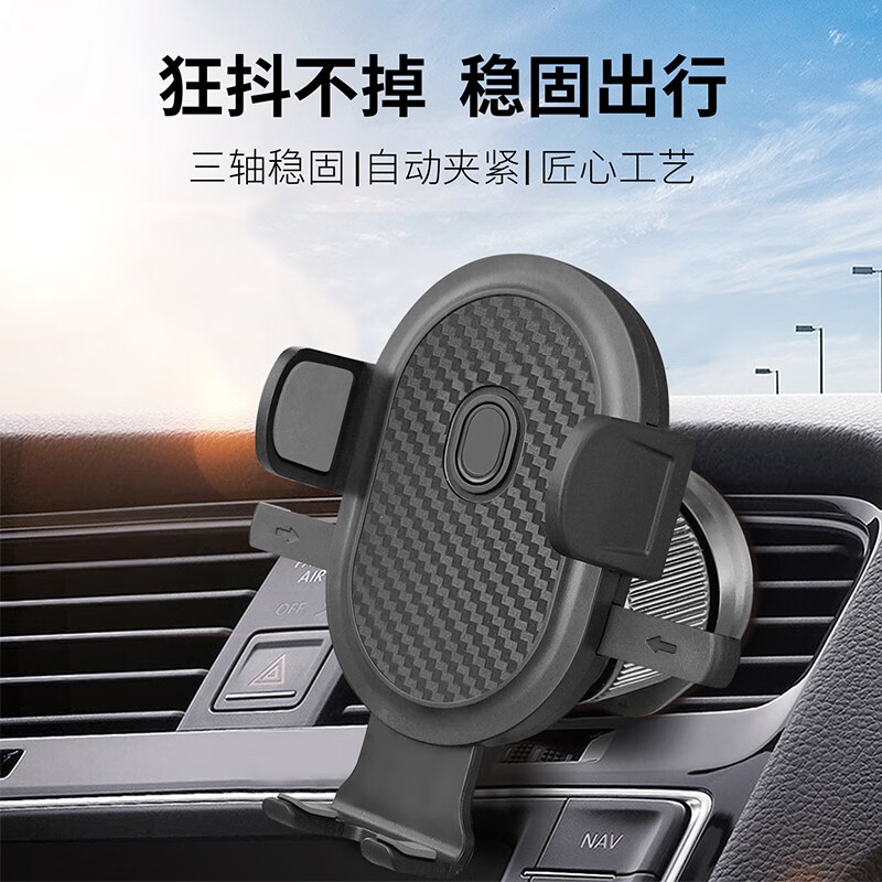 自动夹紧,坚实耐用;主动锁车载出风口支架,单手操作,易放易取;360°自由旋转调整,适用于99%车型