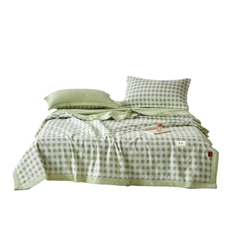 填充羽丝棉,轻压不闷,贴身舒适;透气不闷汗,吸湿散热,空调房使用干爽舒适。轻薄适中;格纹工整走线均匀,不易变形,不易跑棉,可机洗易打理
