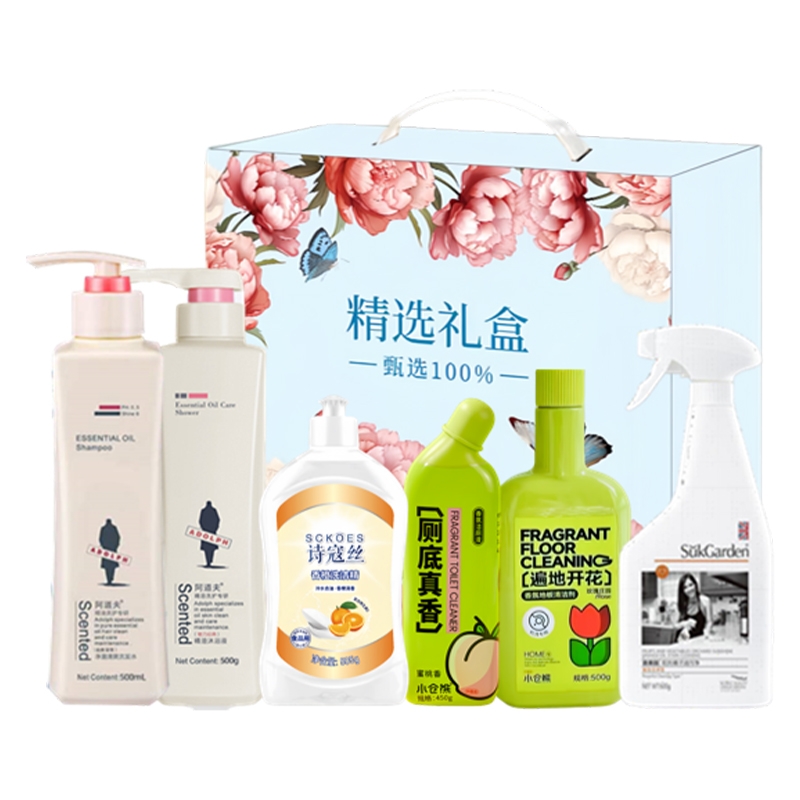 阿道夫精油洗护 + 香氛清洁,洁净留香超治愈;APG 浓缩配方强效去污,环保安全全家适用;全屋清洁刚需配齐,精美礼盒送礼有面