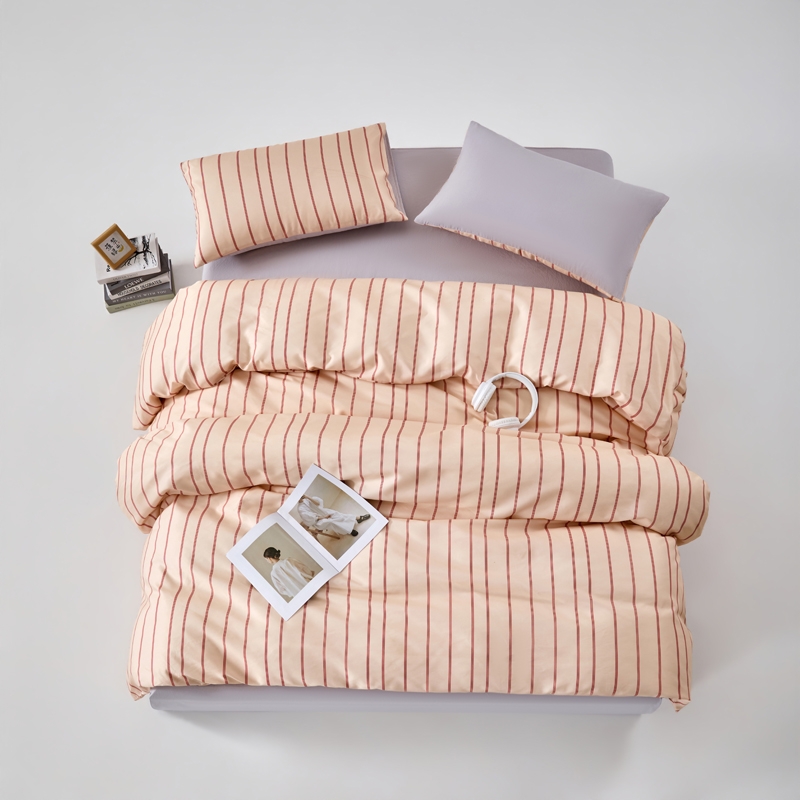 斜纹精梳棉面料,抗菌、环保、亲肤,让生活更舒适。;条纹设计,经典与传承,让体验更舒适。;用心的品质把关,认真的细节处理。