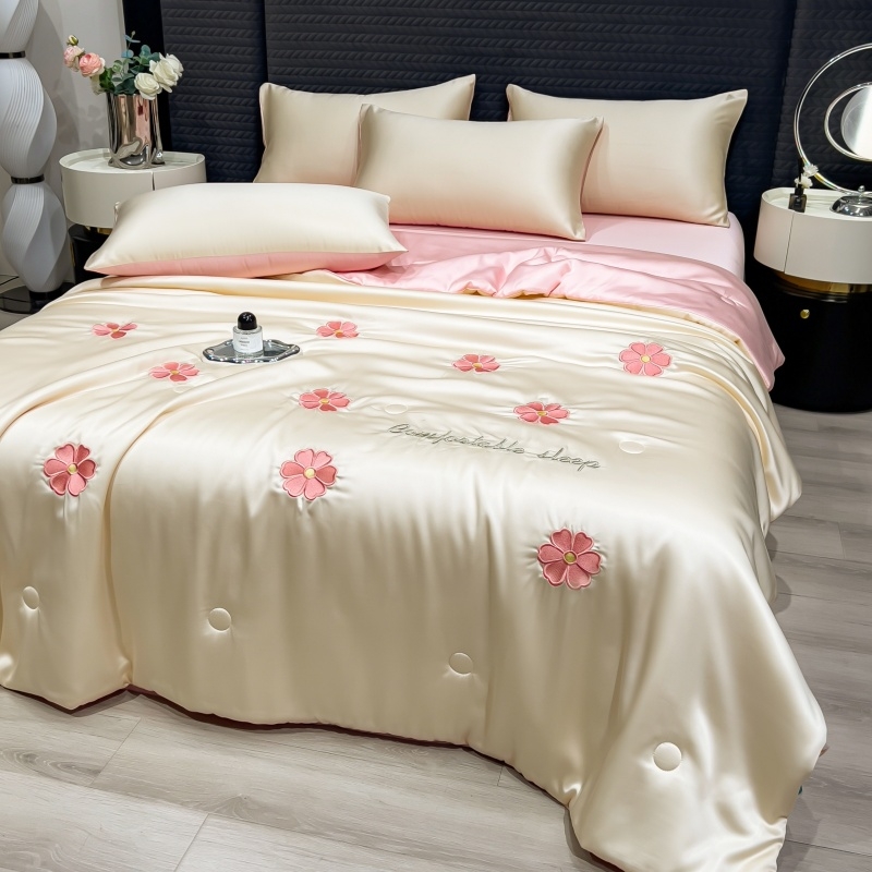 ¥ 188轻柔丝滑夏日裸感·精美刺绣凉感夏被四件套;翻来覆去仰躺侧,百变睡姿丝滑水洗冰丝,娇嫩肌肤感知;触感软糯更贴身 甄选高密冰丝面料科技凉感裸睡无负担