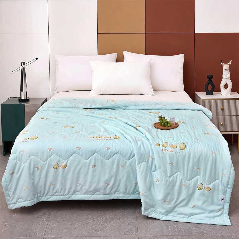 采用凉感丝面料,科技凉感纤维,内外导热;填充可以水洗机洗的高档乳胶,柔软透气;活性环保印染,母婴和敏感肌肤即可使用