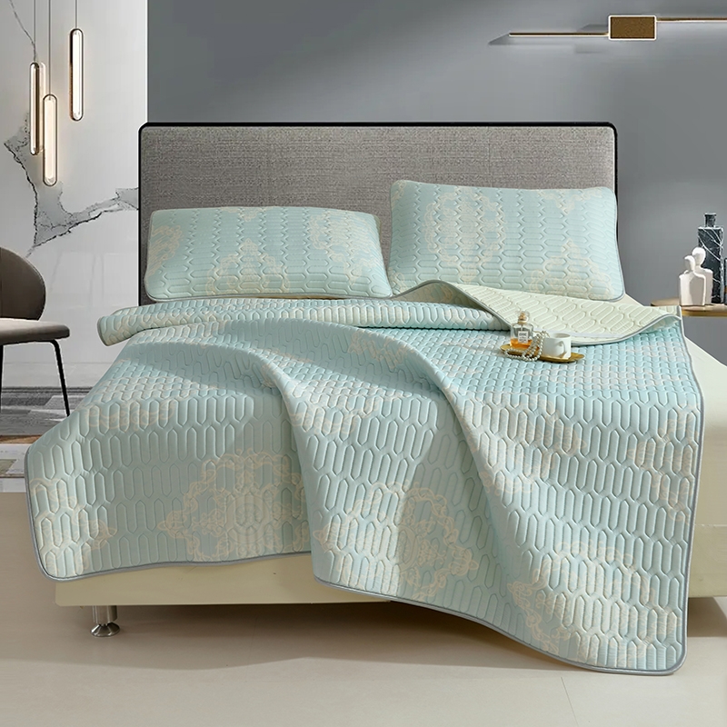 高密碳光冰丝席,自然清凉;碳光凉感冰丝纤维织物本身经过抗菌处理;有效起到抗菌效果,洁净卫生,适合裸睡。