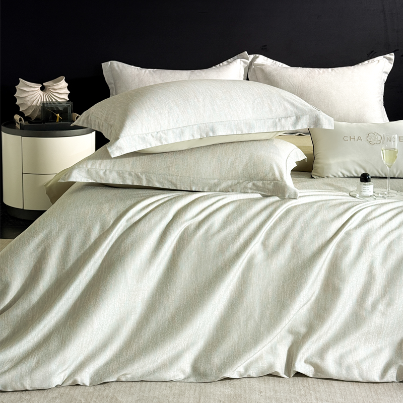 采用天丝棉面料;A版采用独特的天丝棉提花+亮丝镶嵌;更显高端大气