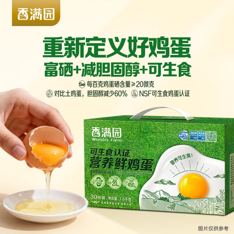 有机硒喂养,好硒好营养;NSF可生食产品认证;绝不添加抗生素、无激素,鸡蛋品质有保障。