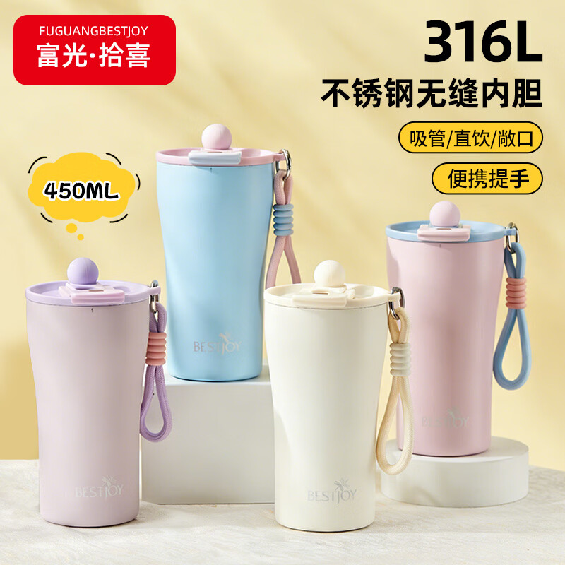 316不锈钢内胆,双层不锈钢无尾抽真空;杯盖一盖双饮;一个盖子具备两种功能-吸管+直饮自由切换