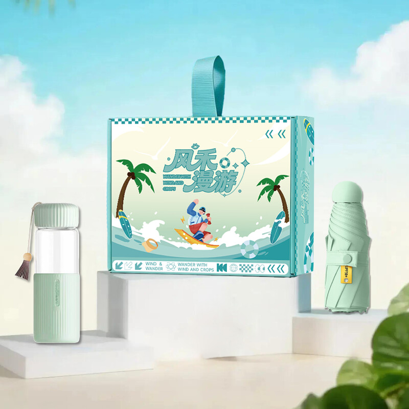 雨伞:6股 黑胶 五折;飞机盖手提礼盒 ;玻璃杯: 材质:玻璃 容量:350毫升