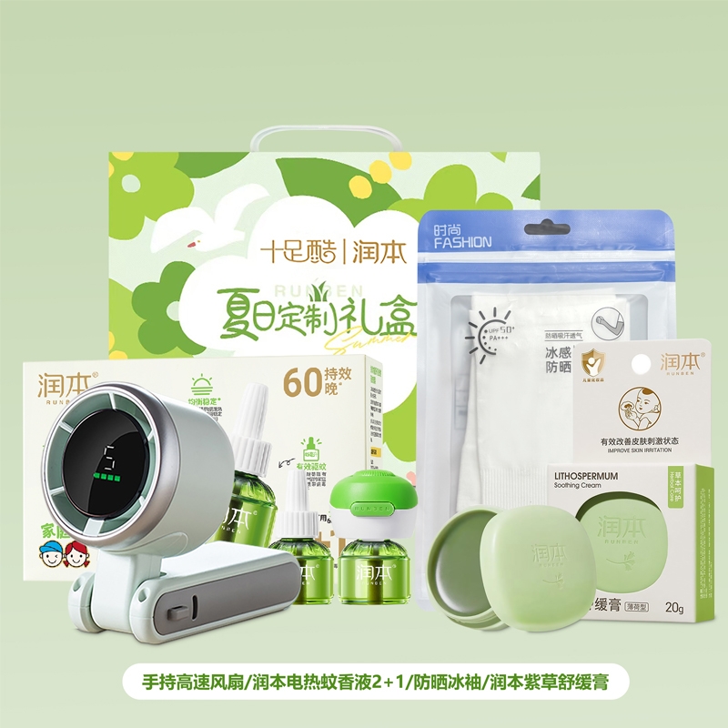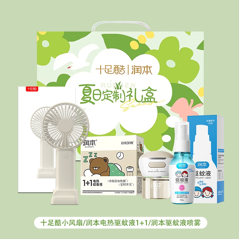 产品风量五档可调,风力强劲,携带方便;润本电热蚊香液: 法国道达尔溶剂;婴儿紫草修护膏: 薄荷型20g,紫草根提取物