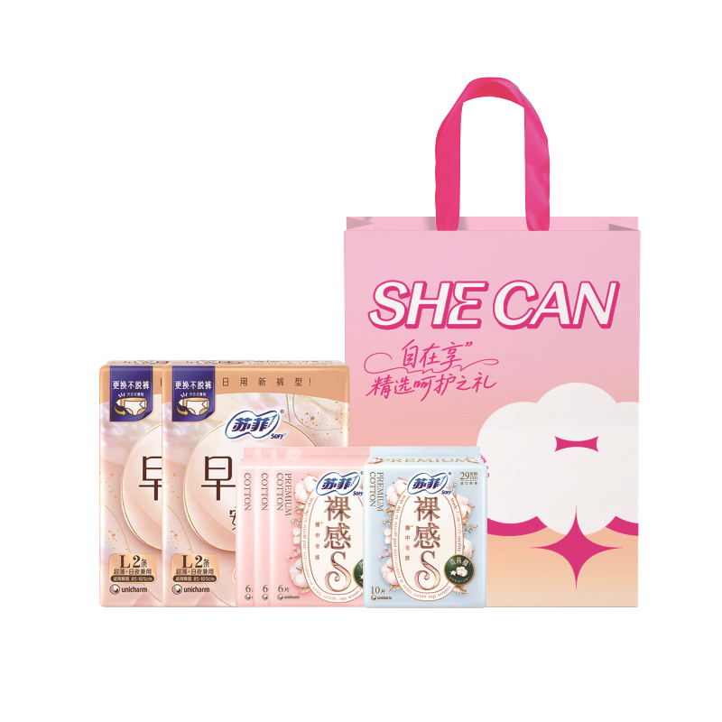 日用夜用安心裤一套全部搞定;立体防漏侧边,减少摩擦;更纯净、低刺激、低致敏