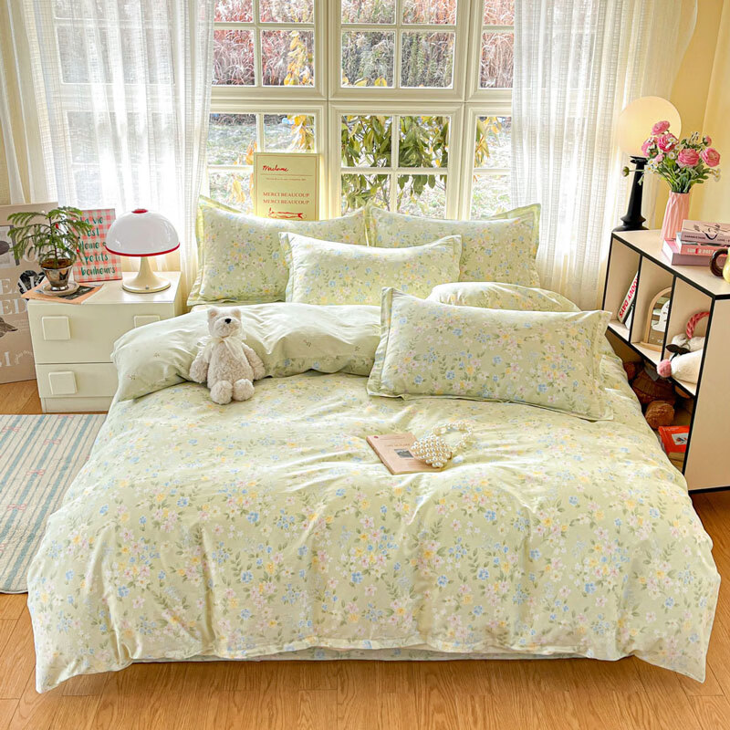 选用水洗冰丝面料,手感舒适光泽感强,爽滑舒适;整张羽丝棉填充,不结板蓬 松透气;采用定位绗缝,防止跑棉,填充物更加均匀;精美刺绣,搭配宽边印花 设计,可水洗机洗;活性印染,色彩靓丽,久用如新