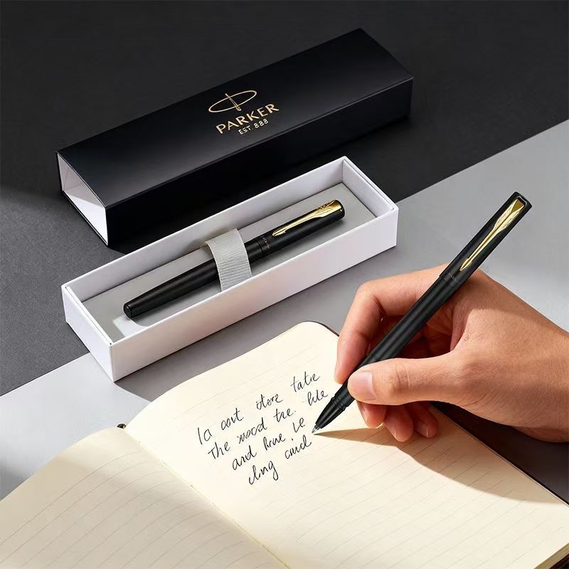 笔夹: 不锈钢+ PVD镀金;笔帽: 黄铜镀漆;书写顺滑