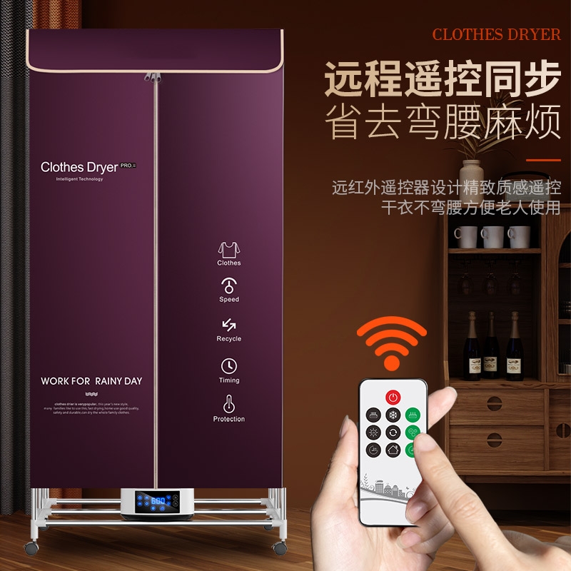 变频速干恒温护衣物;触摸显示屏加遥控远程控制;负离子定时烘干