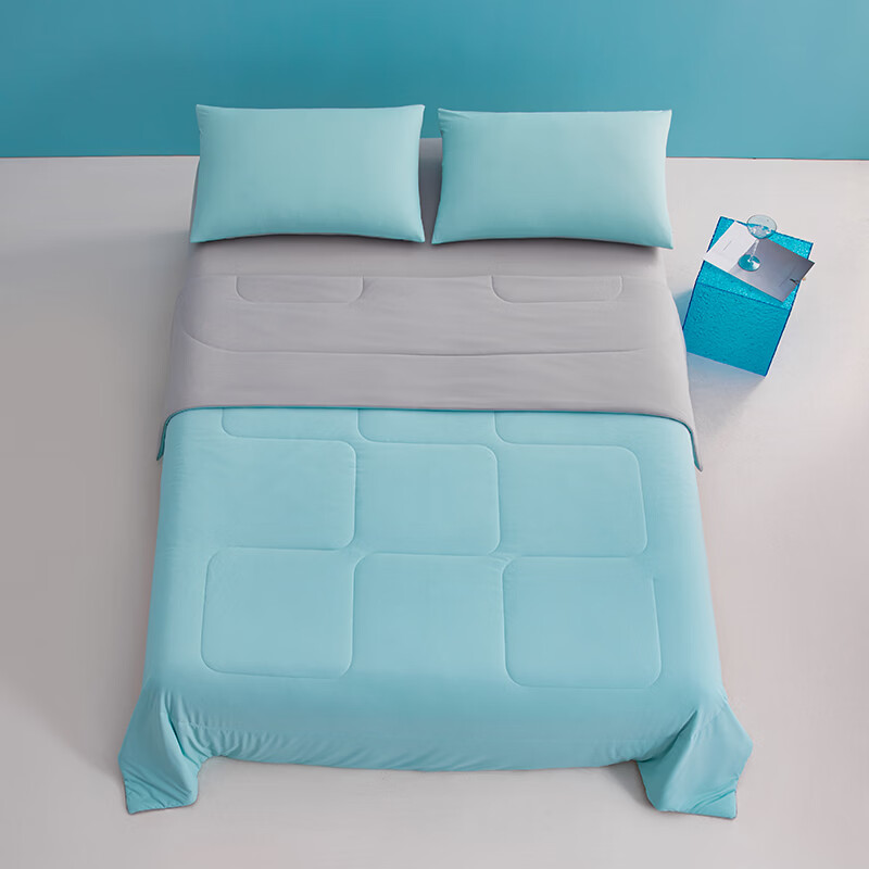 超凉感锦氨凉感丝,凉而不冰,满足一整个夏天;体感凉而不冰睡感更加顺滑,适合炎炎夏日使用;羽丝绵纤维,轻盈蓬松,无压迫感整张一体成型;填充久用不板结