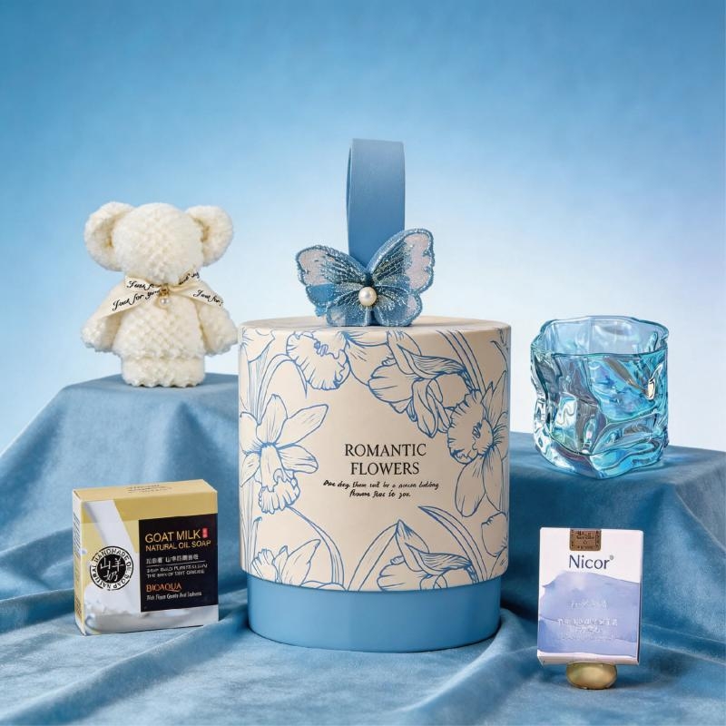 蓝色蝴蝶礼盒 ;扭扭杯: 容量:400毫升;毛巾:材质: 珊瑚绒