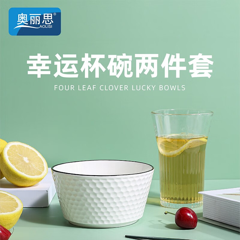 碗口圆润;四叶草图案设计;简约大气