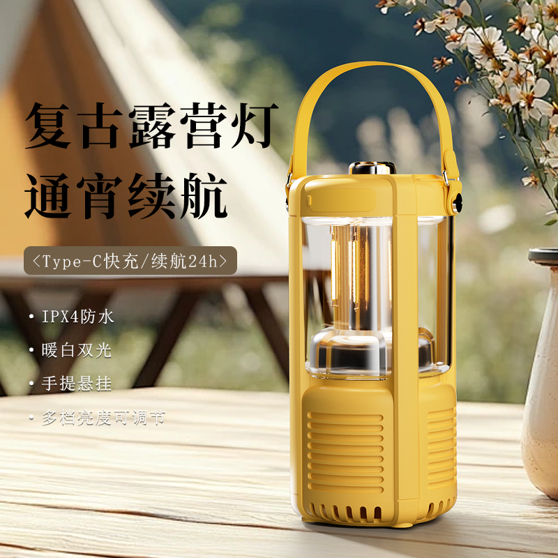 加入PPT蓝牙音箱+露营氛围灯,满足户外/居家照明+音乐需求;手提/悬挂双设计能灵活放在帐篷/天幕下,适配多场景;具备亮度可调/长续航/IPX5级防水等级,符合户外
