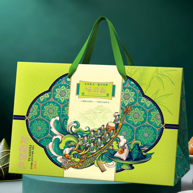 选用优质糯米、新鲜肉类、海鲜等食材,确保粽子的口感;采用传统手工制作工艺,确保粽子的形状、口感和风味符;精美礼盒装