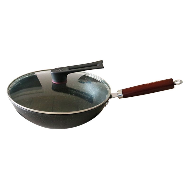 高端套装.优质精铁氮化+不粘工艺完美结合;优质不粘,经久耐用,实木把手;煤气 天然气使用带玻璃盖款