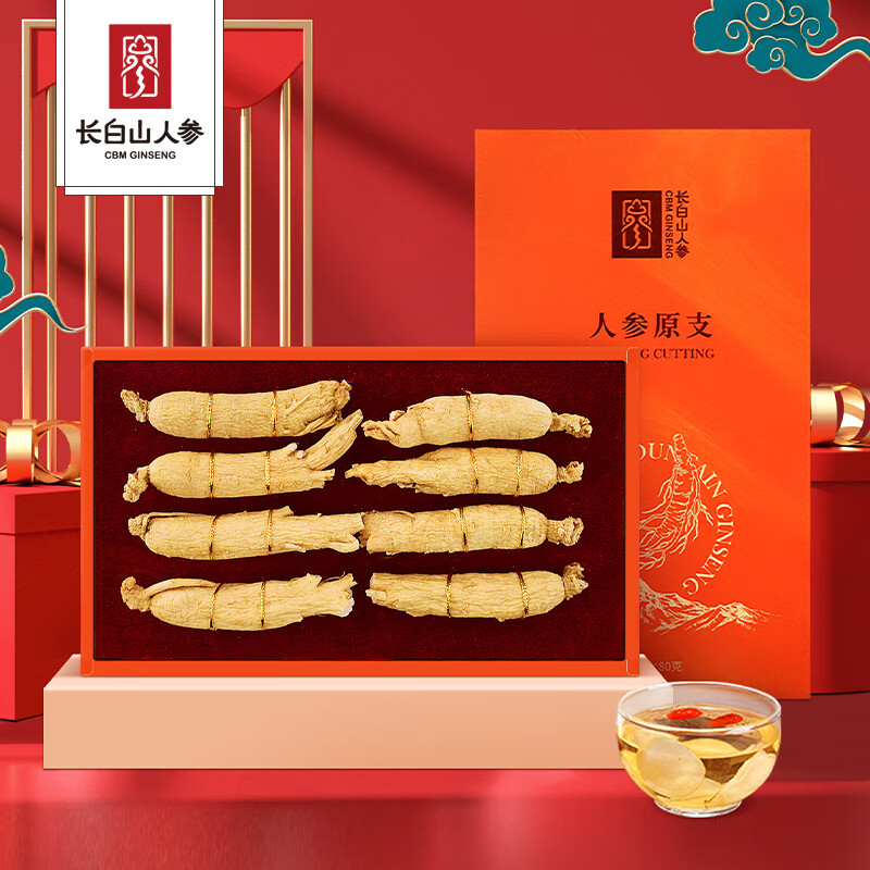 质地饱满,参香四溢;可切片含服、泡水喝、煲汤等;精致礼盒参情厚谊
