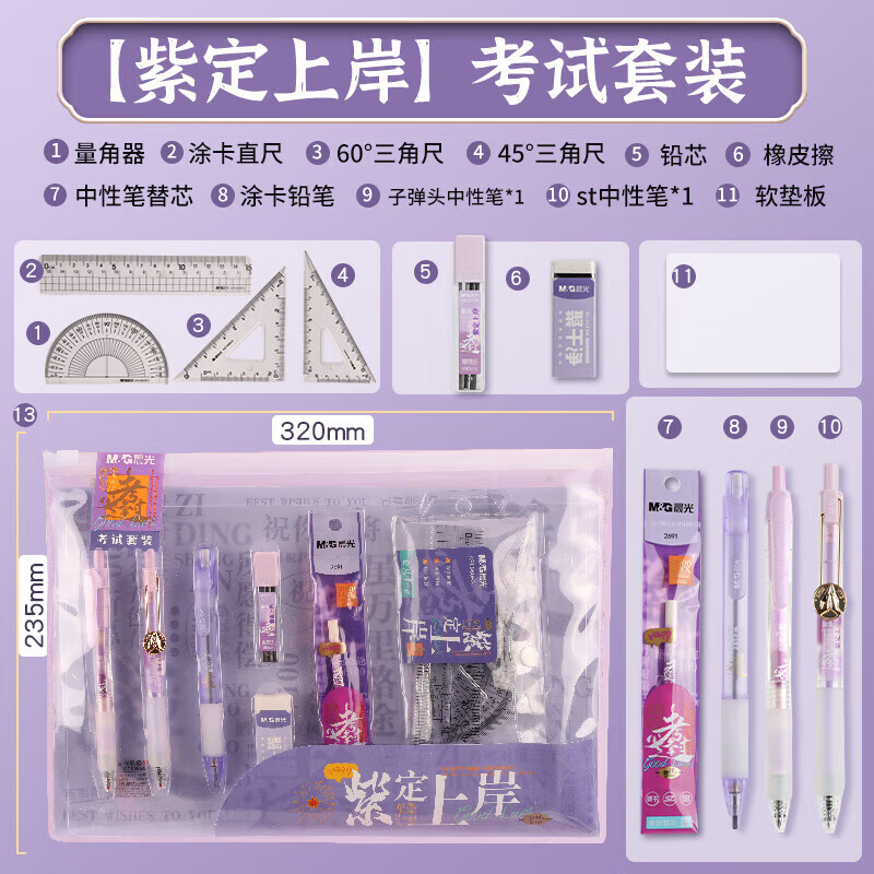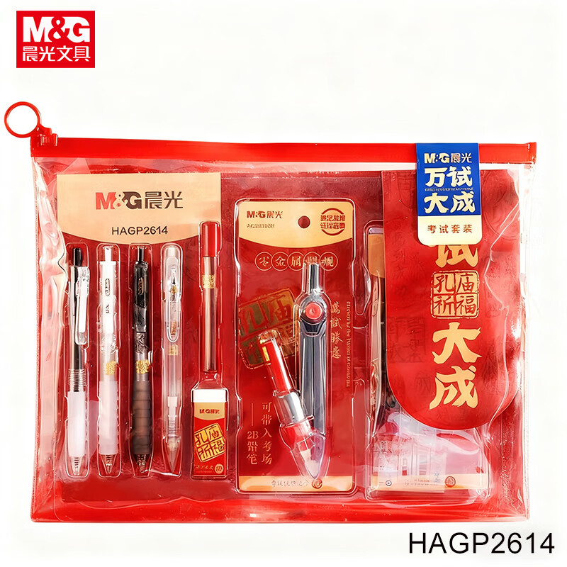 高透套尺,刻度清晰可见;书写顺滑;考试一件齐全
