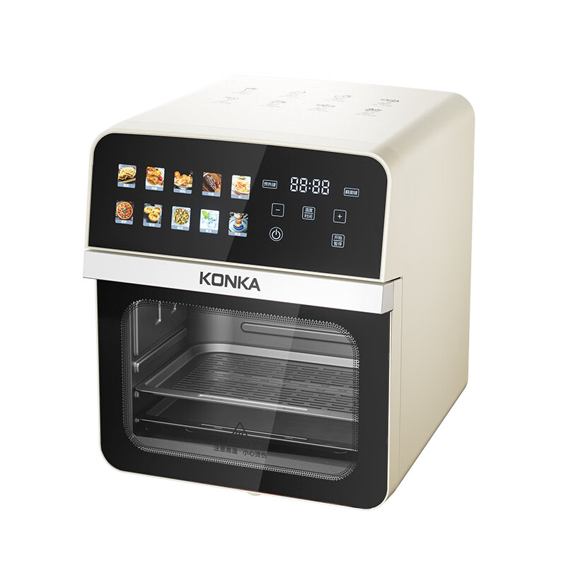 蒸汽嫩烤科技,锁住鲜嫩口感;双核热风循环,轻松烘烤;烤架式炸篮,分体设计易清洁