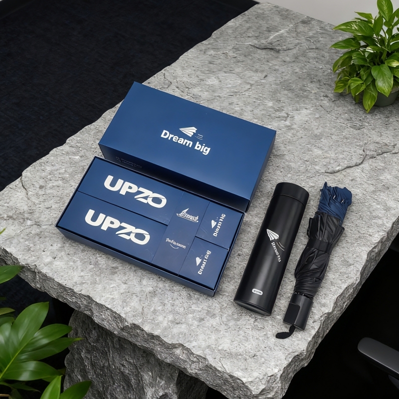 手动三折伞 黑胶面料 95直径 逐梦主题融入;保温杯带温度显示 304内胆 逐梦主题融入;主题套装礼盒融入设计 商务风