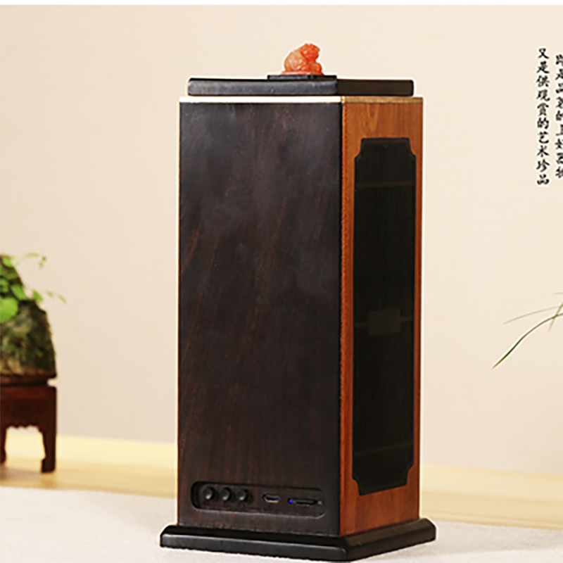 红木实木结构;手工打造,可点盘香;蓝牙对接