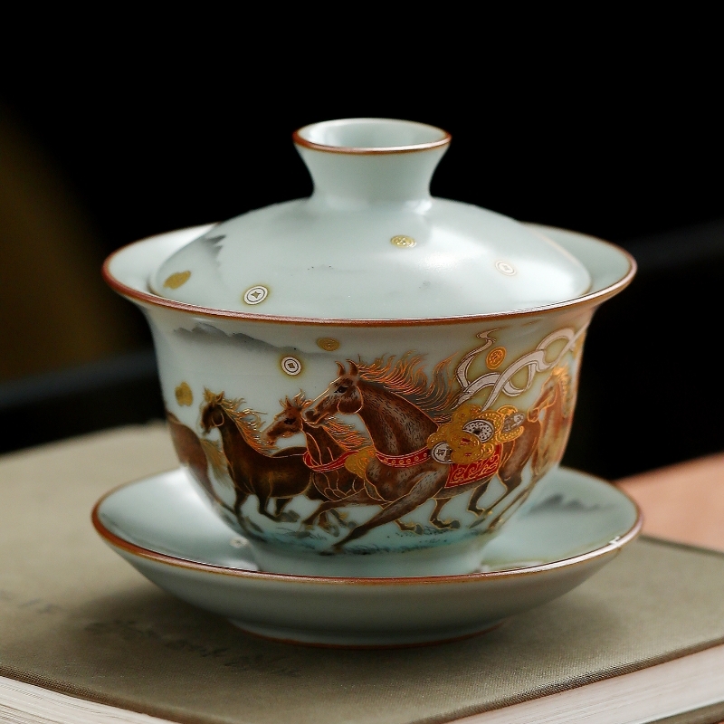 釉如凝脂,器若天成;八骏奔腾,气韵纵横;汝窑 · 八骏图,宋韵风华与千年马魂的完美交融;开门红马上有钱