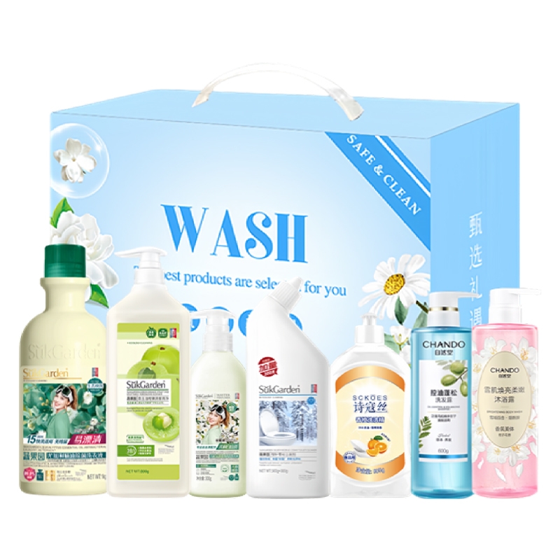 家清洗护双配齐,洗衣洁厕果蔬清洁全覆盖;植萃香氛洗沐套装,控油蓬松焕亮肌肤留香;轻奢甄选礼盒,自用送礼高端贴心有格调