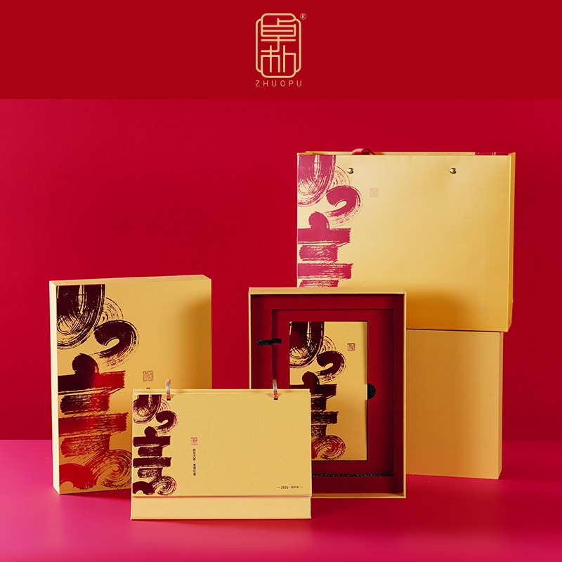 传统福禄纹样烫金纸盒,设计轻盈便携,年味洋溢;满足企业员工福利、普适客户问候等广谱送礼需求;支持小批量灵活定制,打造独一无二的专属年礼