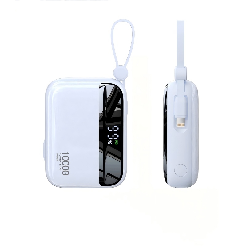 随身自带线、随用随充;大容量 10000mAh、出行电量没烦恼;智能大数显屏、电量一目了然