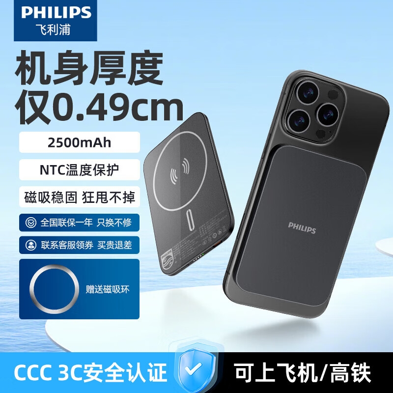 飞利浦 2500毫安超轻薄磁吸充电宝DLP9502